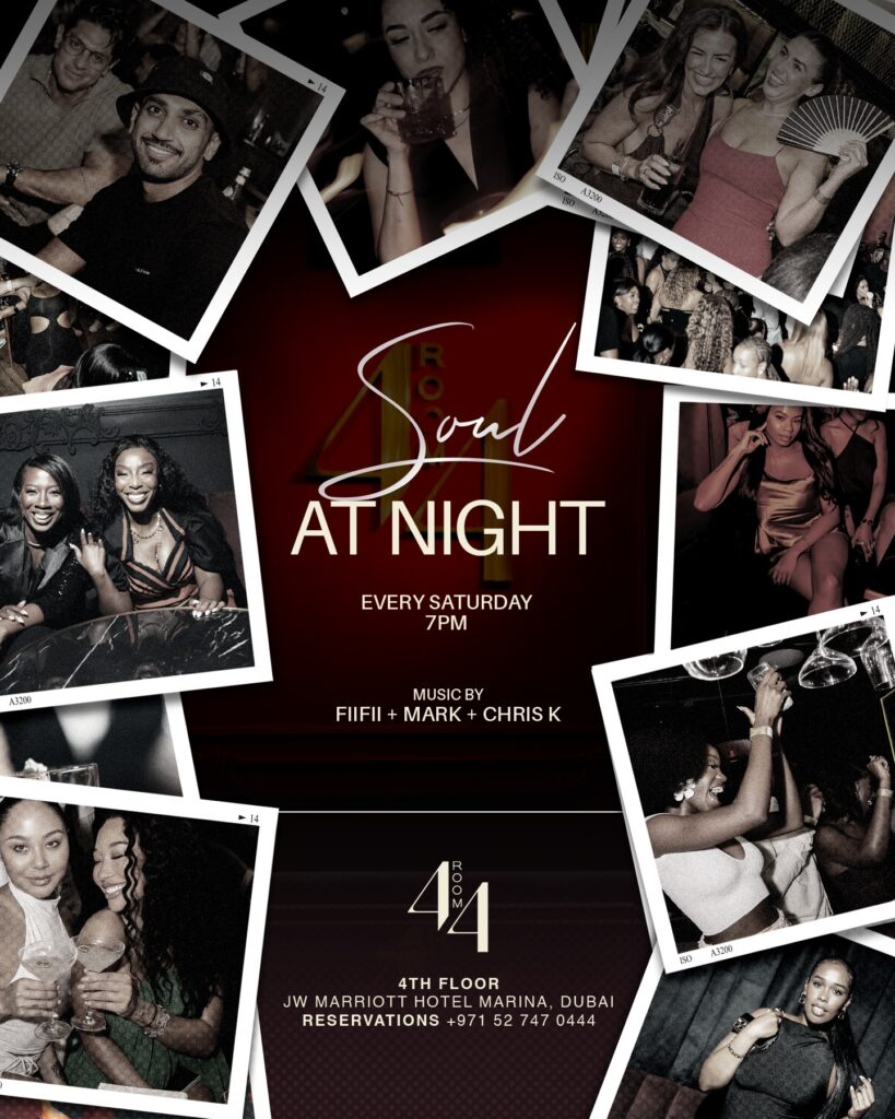 Every night in Room 44 is designed with intention. From genre-curated sounds to live performances and art-led activations - the programme is being crafted to set a new standard for Dubai nightlife. THE PRELUDE Room 44 Dubai – JW Marriott Marina Every Monday ~ 10PM THE BLUEPRINT Room 44 Dubai – JW Marriott Marina Every Tuesday | 10PM R&B LIVE Room 44 Dubai – JW Marriott Marina Every Wednesday | 10PM JERK X JOLLOF: DUBAI Monkey Bar Dubai 12th December | 8PM – Late PRETTY GIRLS TRAP Room 44 Dubai – JW Marriott Marina Every Thursdays ~ 10PM TERANGA Room 44 Dubai – JW Marriott Marina Every Fridays ~ 10PM SOUL AT NIGHT Room 44 Dubai – JW Marriott Marina Every Saturdays~ 10PM JAM SESSIONS Room 44 Dubai – JW Marriott Marina Every Sundays~ 6PM